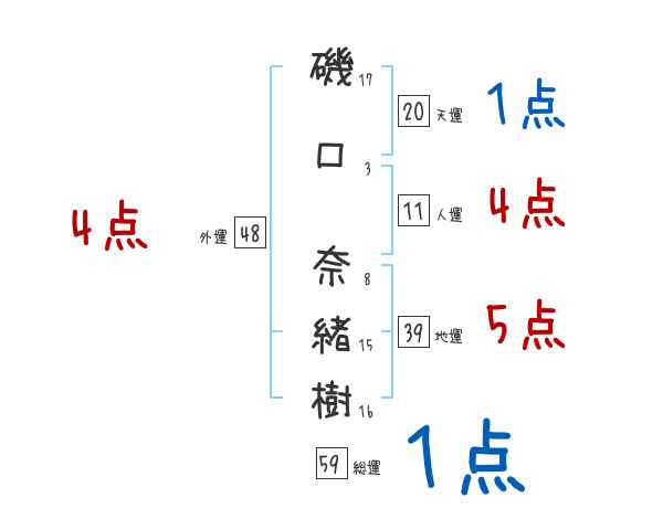 外運![]() | 磯口奈緒樹さんの外運は48画の4つ星!賢明な性格で人望が厚い。指導力があり多くの人に尊敬される。 生活面を象徴する運勢です。外部から受ける影響力を表し、結婚運、家庭運や職場、環境への順応性を表します。 |