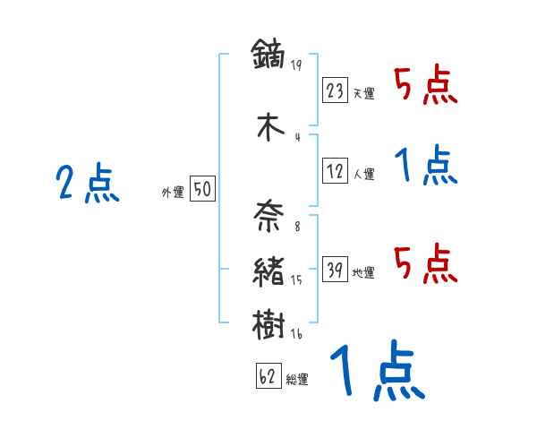 外運![]() | 鏑木奈緒樹さんの外運は50画の2つ星!浮き沈みが激しく不安定。しりすぼみに衰退しやすいので注意しましょう。 生活面を象徴する運勢です。外部から受ける影響力を表し、結婚運、家庭運や職場、環境への順応性を表します。 |