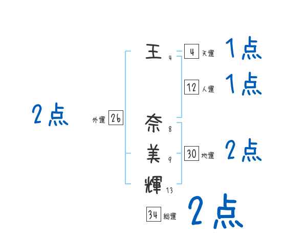 総運![]() | 王奈美輝さんの総運は34画の2つ星!独創性に優れるが、自尊心が強く災難に注意しましょう。 あなたの人生を表す1番重要な運勢です。生涯を通じて影響する総合運となり、主に50歳以降の晩年期に影響を及ぼします。 |