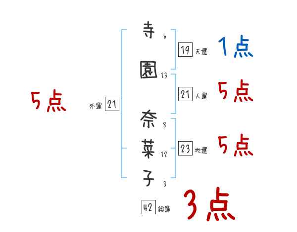 総運![]() | 寺園奈菜子さんの総運は42画の3つ星!病気に注意。多芸であるが消極的でおとなしい。 あなたの人生を表す1番重要な運勢です。生涯を通じて影響する総合運となり、主に50歳以降の晩年期に影響を及ぼします。 |