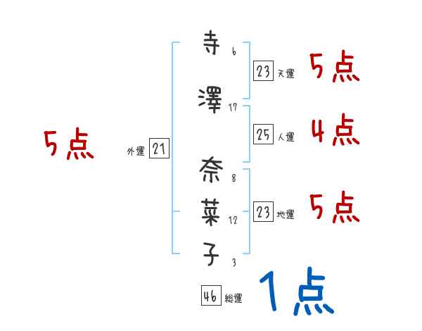 寺澤奈菜子さんの画数の鑑定結果