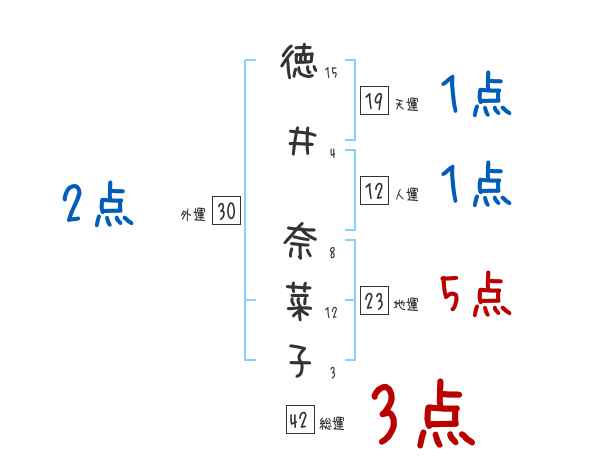 徳井奈菜子さんの画数の鑑定結果