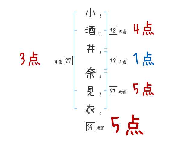 小酒井奈見衣さんの画数の鑑定結果