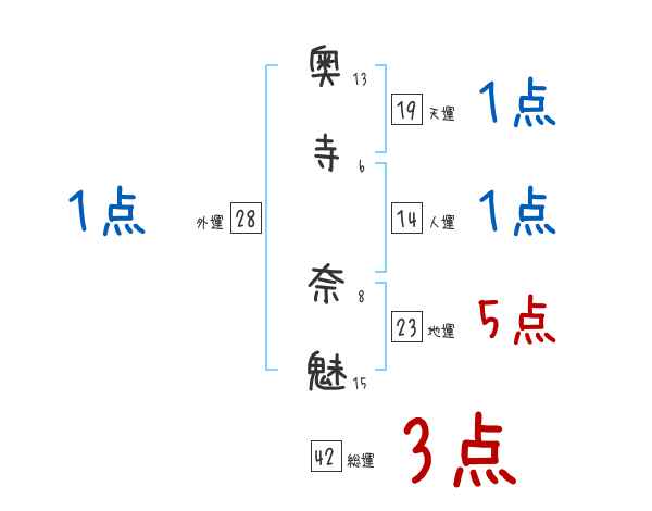 総運![]() | 奥寺奈魅さんの総運は42画の3つ星!病気に注意。多芸であるが消極的でおとなしい。 あなたの人生を表す1番重要な運勢です。生涯を通じて影響する総合運となり、主に50歳以降の晩年期に影響を及ぼします。 |
