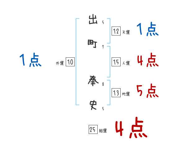 出町奉史さんの画数の鑑定結果