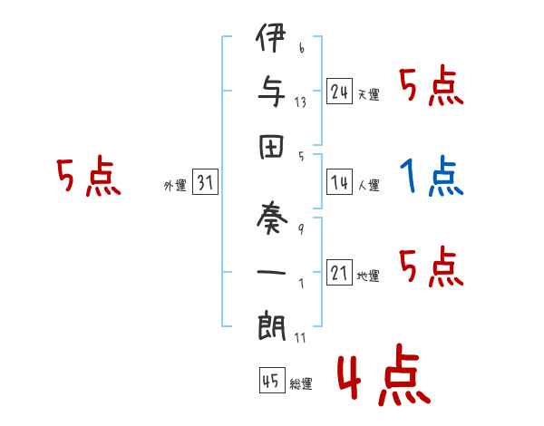 伊与田奏一朗さんの画数の鑑定結果