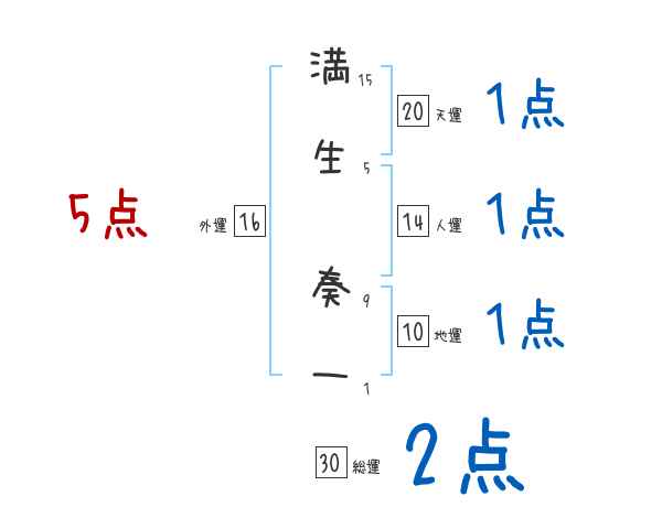 満生奏一さんの画数の鑑定結果