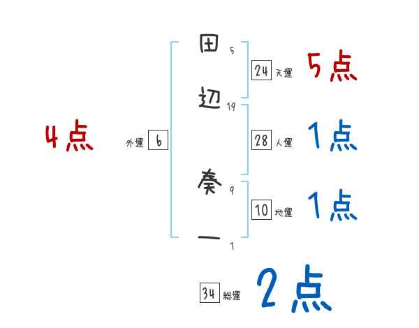田辺奏一さんの画数の鑑定結果