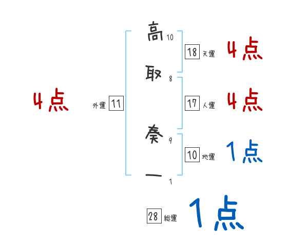 高取奏一さんの画数の鑑定結果