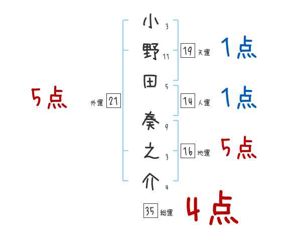 小野田奏之介さんの画数の鑑定結果