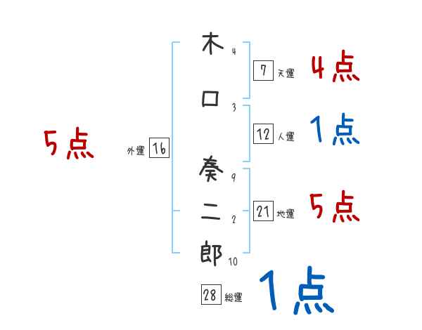 総運![]() | 木口奏二郎さんの総運は28画の1つ星!家庭環境に注意。スポーツで活躍できる能力があるかも。 あなたの人生を表す1番重要な運勢です。生涯を通じて影響する総合運となり、主に50歳以降の晩年期に影響を及ぼします。 |
