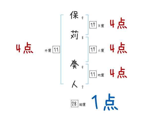 保苅奏人さんの画数の鑑定結果