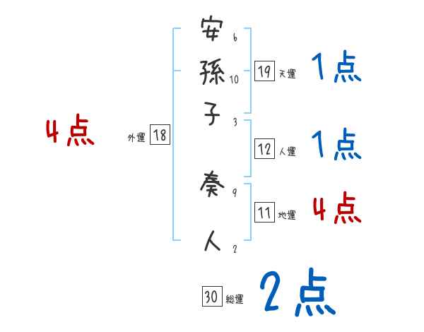 安孫子奏人さんの画数の鑑定結果