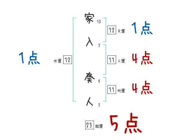 家入奏人さんの画数の鑑定結果
