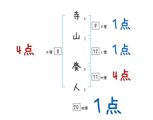 外運![]() | 寺山奏人さんの外運は8画の4つ星!勤勉家。根気強く努力し成功する。忍耐力がある。 生活面を象徴する運勢です。外部から受ける影響力を表し、結婚運、家庭運や職場、環境への順応性を表します。 |