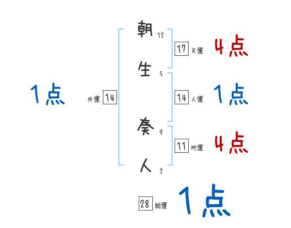 朝生奏人さんの画数の鑑定結果