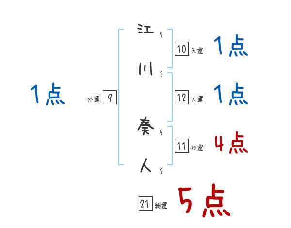 総運![]() | 江川奏人さんの総運は21画の5つ星!統率力がある。独立し成功する。名誉を手に入れる。 あなたの人生を表す1番重要な運勢です。生涯を通じて影響する総合運となり、主に50歳以降の晩年期に影響を及ぼします。 |