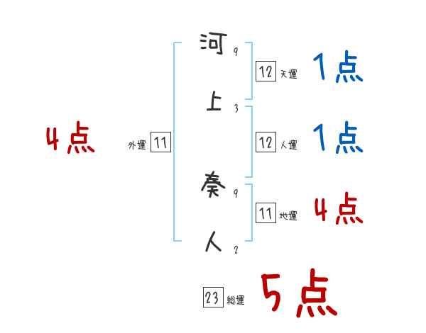 総運![]() | 河上奏人さんの総運は23画の5つ星!想像力に優れ活力がある。一代で成功し名誉を手に入れる。 あなたの人生を表す1番重要な運勢です。生涯を通じて影響する総合運となり、主に50歳以降の晩年期に影響を及ぼします。 |