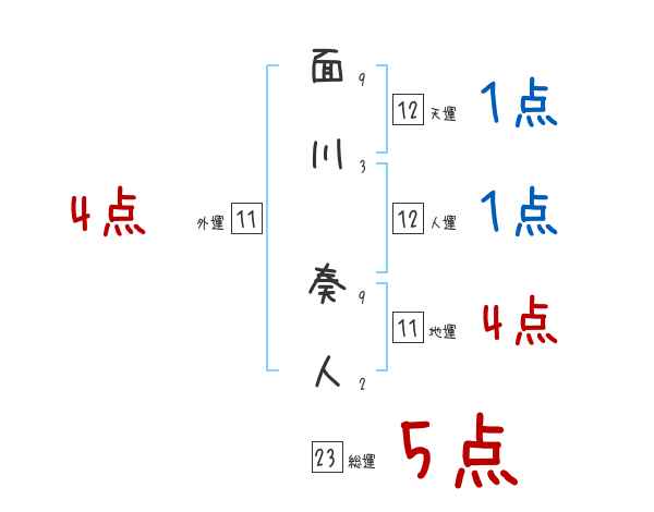 面川奏人さんの画数の鑑定結果
