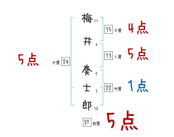 梅井奏士郎さんの画数の鑑定結果