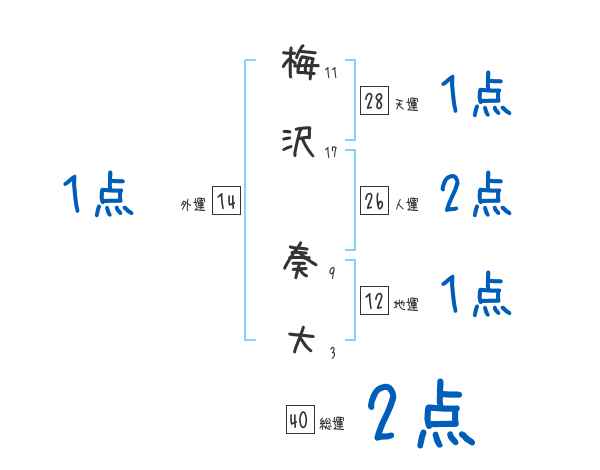 梅沢奏大さんの画数の鑑定結果