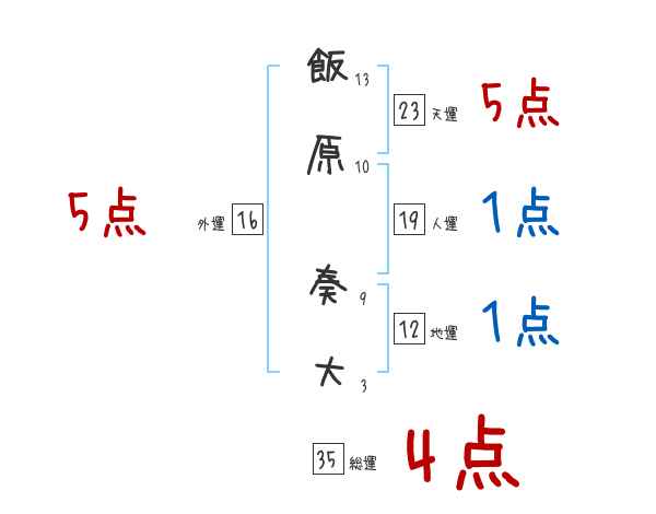 飯原奏大さんの画数の鑑定結果
