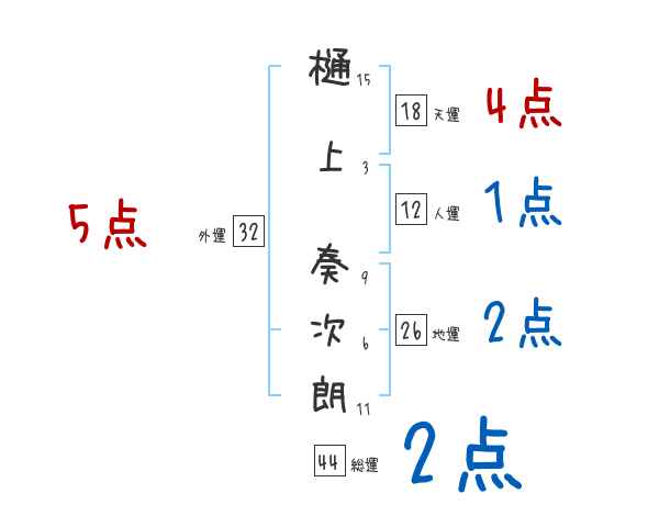 樋上奏次朗さんの画数の鑑定結果