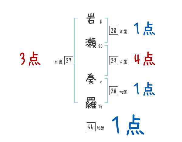岩瀬奏羅さんの画数の鑑定結果