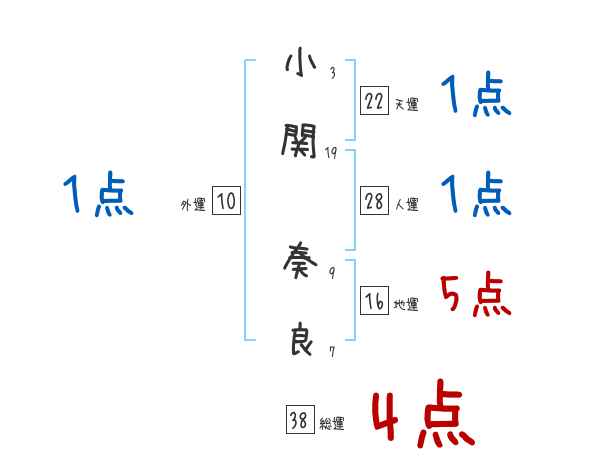 小関奏良さんの画数の鑑定結果