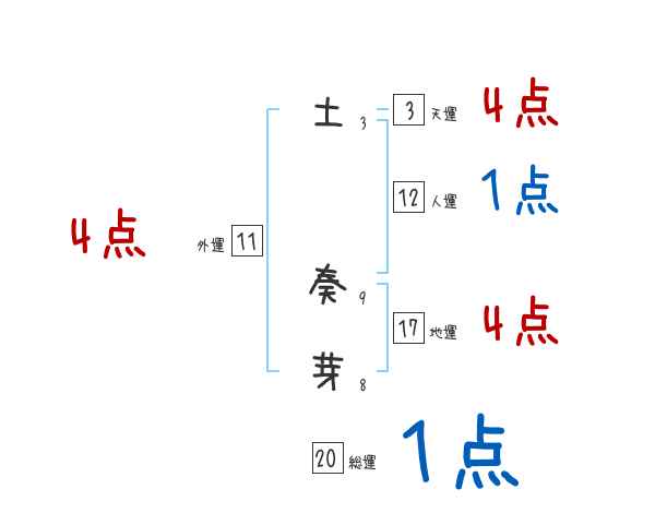 土奏芽さんの画数の鑑定結果