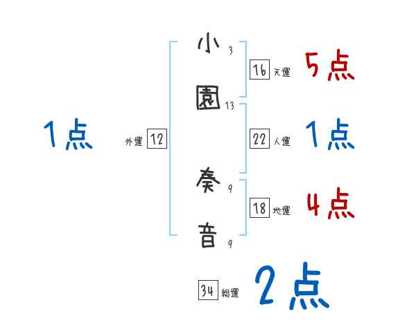 小園奏音さんの画数の鑑定結果