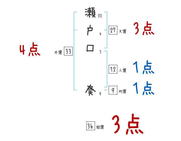 瀬戸口奏さんの画数の鑑定結果