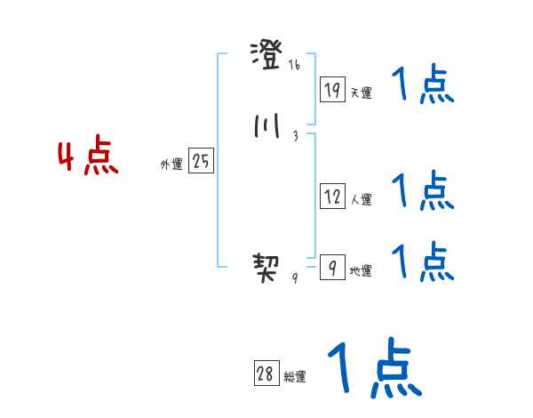 総運![]() | 澄川契さんの総運は28画の1つ星!家庭環境に注意。スポーツで活躍できる能力があるかも。 あなたの人生を表す1番重要な運勢です。生涯を通じて影響する総合運となり、主に50歳以降の晩年期に影響を及ぼします。 |