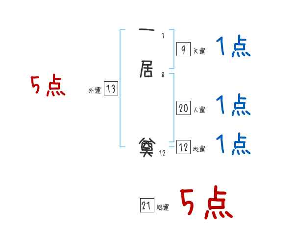 一居奠さんの画数の鑑定結果