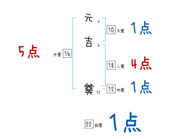 外運![]() | 元吉奠さんの外運は16画の5つ星!人望が厚く大きく発展する。逆転成功が見える。 生活面を象徴する運勢です。外部から受ける影響力を表し、結婚運、家庭運や職場、環境への順応性を表します。 |