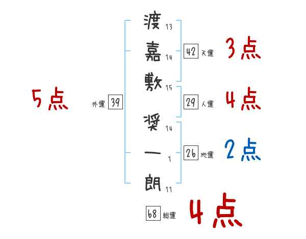 渡嘉敷奨一朗さんの画数の鑑定結果
