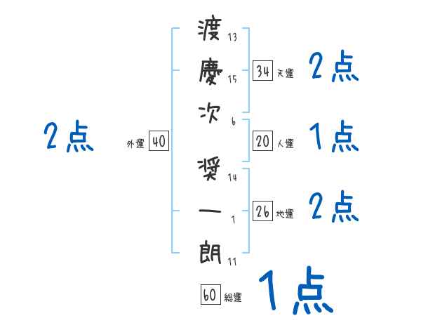 家系が持つ宿命的な運勢を表します。祖先から受け継いだ苗字ですので自分の力が及びません。家柄を象徴します。