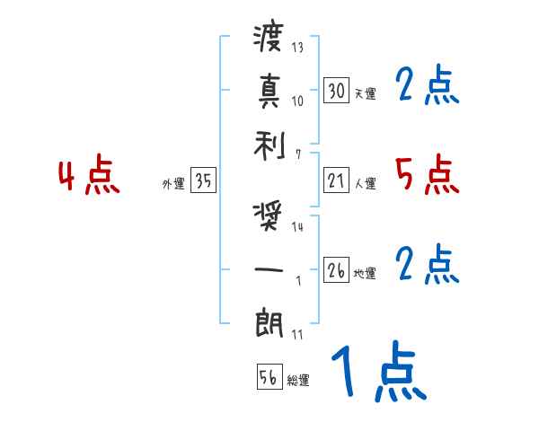 渡真利奨一朗さんの画数の鑑定結果