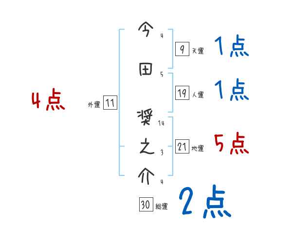 天運![]() | 今田奨之介さんの天運は9画の1つ星!消極的で才能を発揮することが苦手なことも。周りの意見に耳を傾けましょう。 家系が持つ宿命的な運勢を表します。祖先から受け継いだ苗字ですので自分の力が及びません。家柄を象徴します。 |
