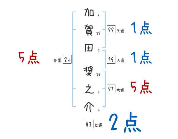 加賀田奨之介さんの画数の鑑定結果