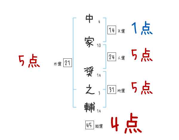外運![]() | 中家奨之輔さんの外運は21画の5つ星!統率力がある。独立し成功する。名誉を手に入れる。 生活面を象徴する運勢です。外部から受ける影響力を表し、結婚運、家庭運や職場、環境への順応性を表します。 |