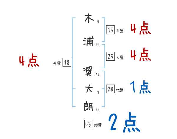 木浦奨大朗さんの画数の鑑定結果