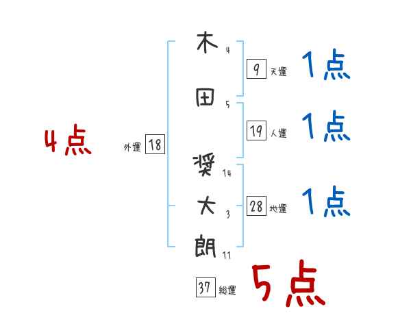 天運![]() | 木田奨大朗さんの天運は9画の1つ星!消極的で才能を発揮することが苦手なことも。周りの意見に耳を傾けましょう。 家系が持つ宿命的な運勢を表します。祖先から受け継いだ苗字ですので自分の力が及びません。家柄を象徴します。 |