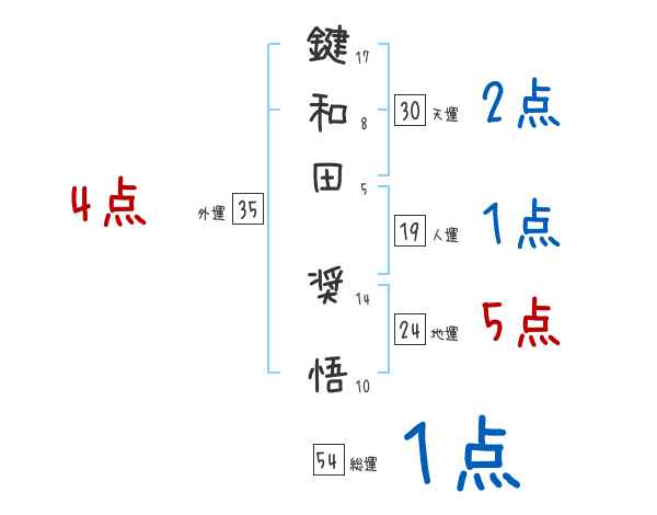 鍵和田奨悟さんの画数の鑑定結果