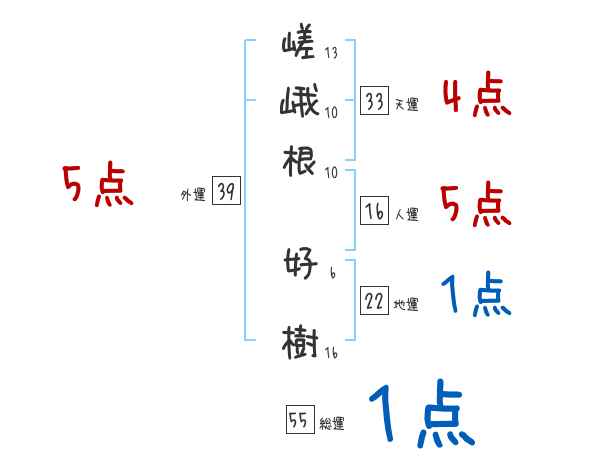 嵯峨根好樹さんの画数の鑑定結果