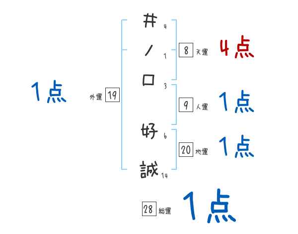 井ノ口好誠さんの画数の鑑定結果