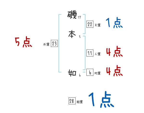 磯本如さんの画数の鑑定結果