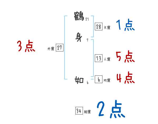 鶴身如さんの画数の鑑定結果
