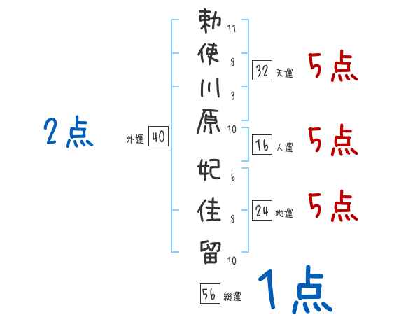 勅使川原妃佳留さんの画数の鑑定結果