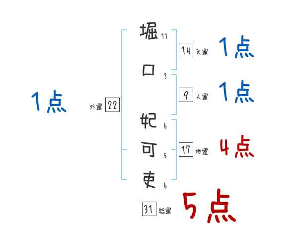 堀口妃可吏さんの画数の鑑定結果